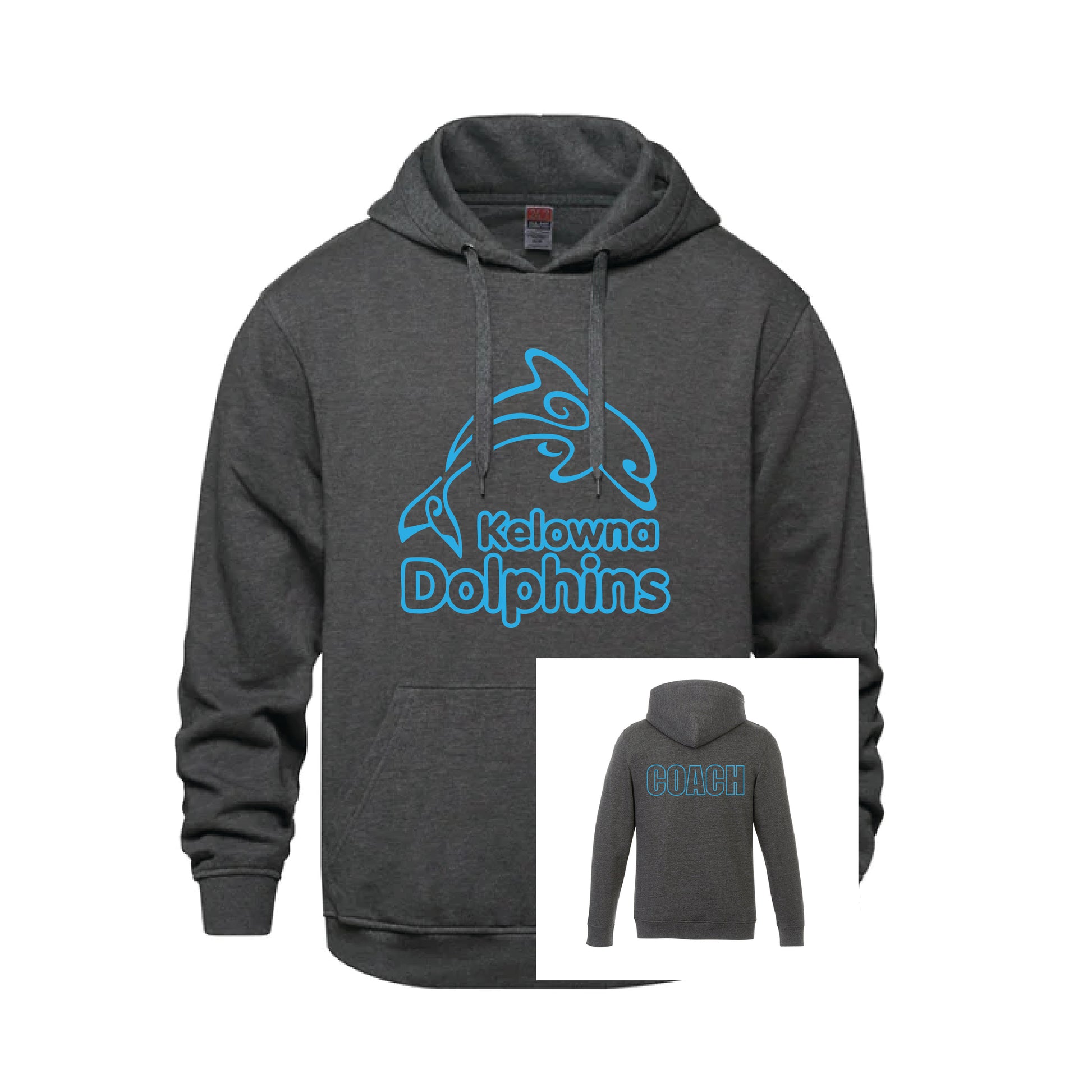 Kelowna Dolphins Coach - A comfy way to represent your Kelowna Dolphins Artistic swim team. These hoodies are a perfect blend of comfort, durability and everyday versatility. You will not be disappointed in the with the soft breathable cotton-blend fabric, an adjustable drawstring hood, a spacious kangaroo pocket, and ribbed cuffs and hem for a secure, comfortable fit.