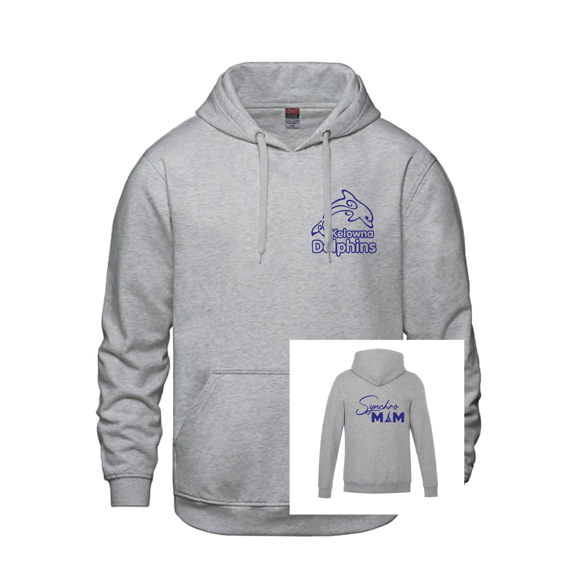 Kelowna Dolphins Synchro Mom - A comfy way to represent your Kelowna Dolphins Artistic swim team. These hoodies are a perfect blend of comfort, durability and everyday versatility. You will not be disappointed in the with the soft breathable cotton-blend fabric, an adjustable drawstring hood, a spacious kangaroo pocket, and ribbed cuffs and hem for a secure, comfortable fit.